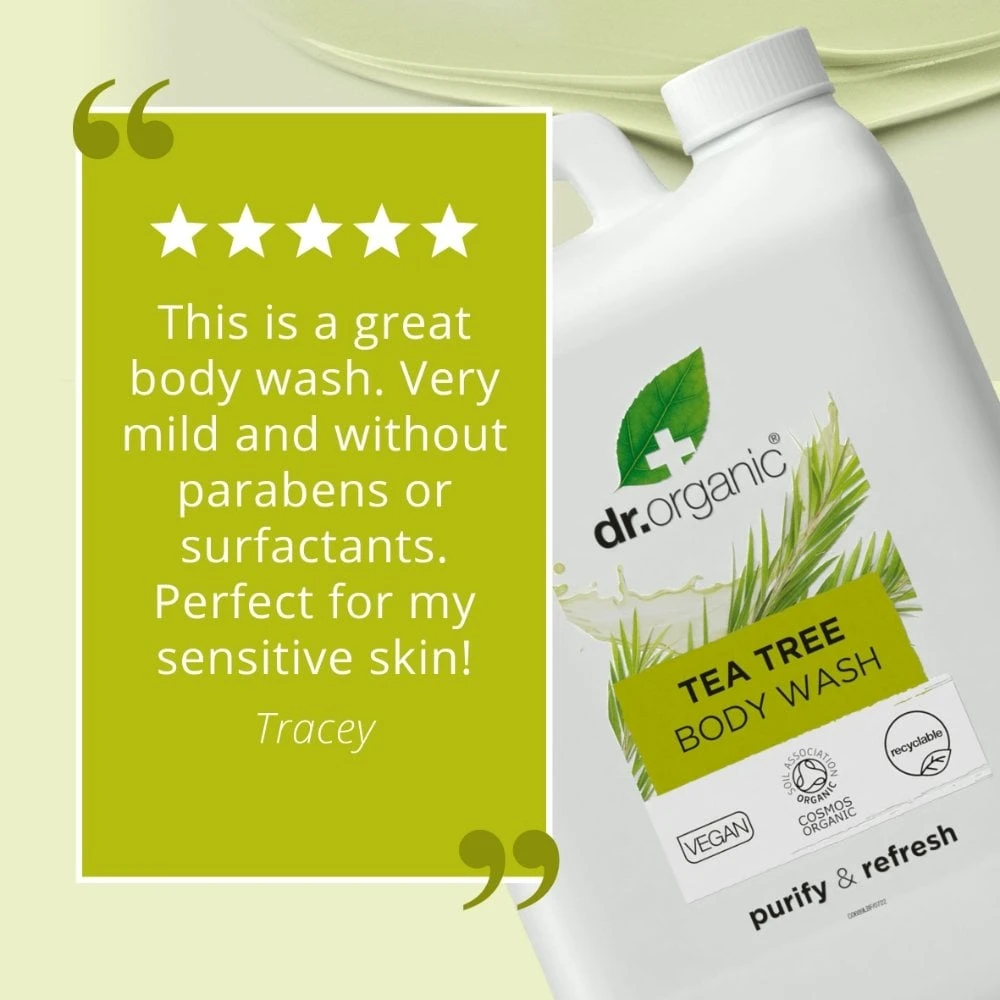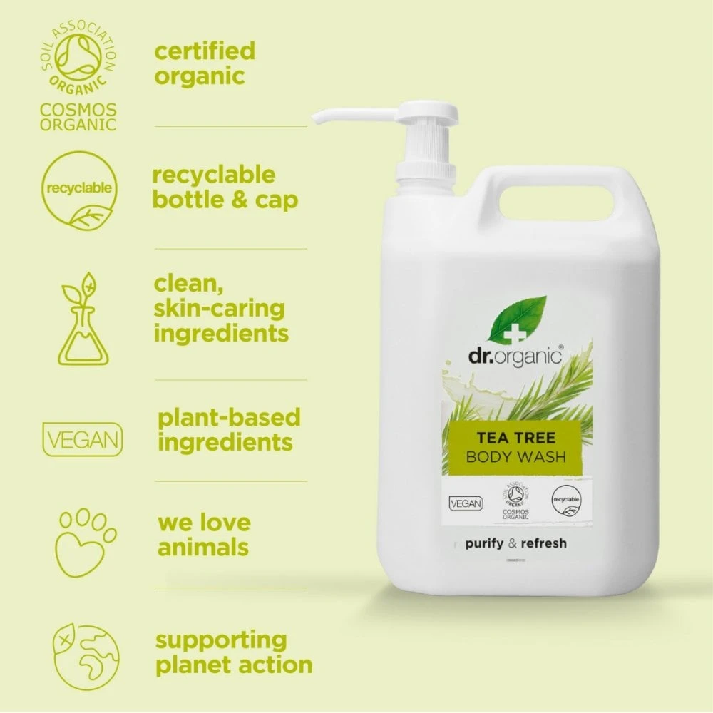 Dr. Organic Tea Tree Body Wash for Normal to Oily Skin (5000ml) is a purifying, revitalising, and restoring body wash designed specifically for normal to oily skin, blemishes, and blocked pores.