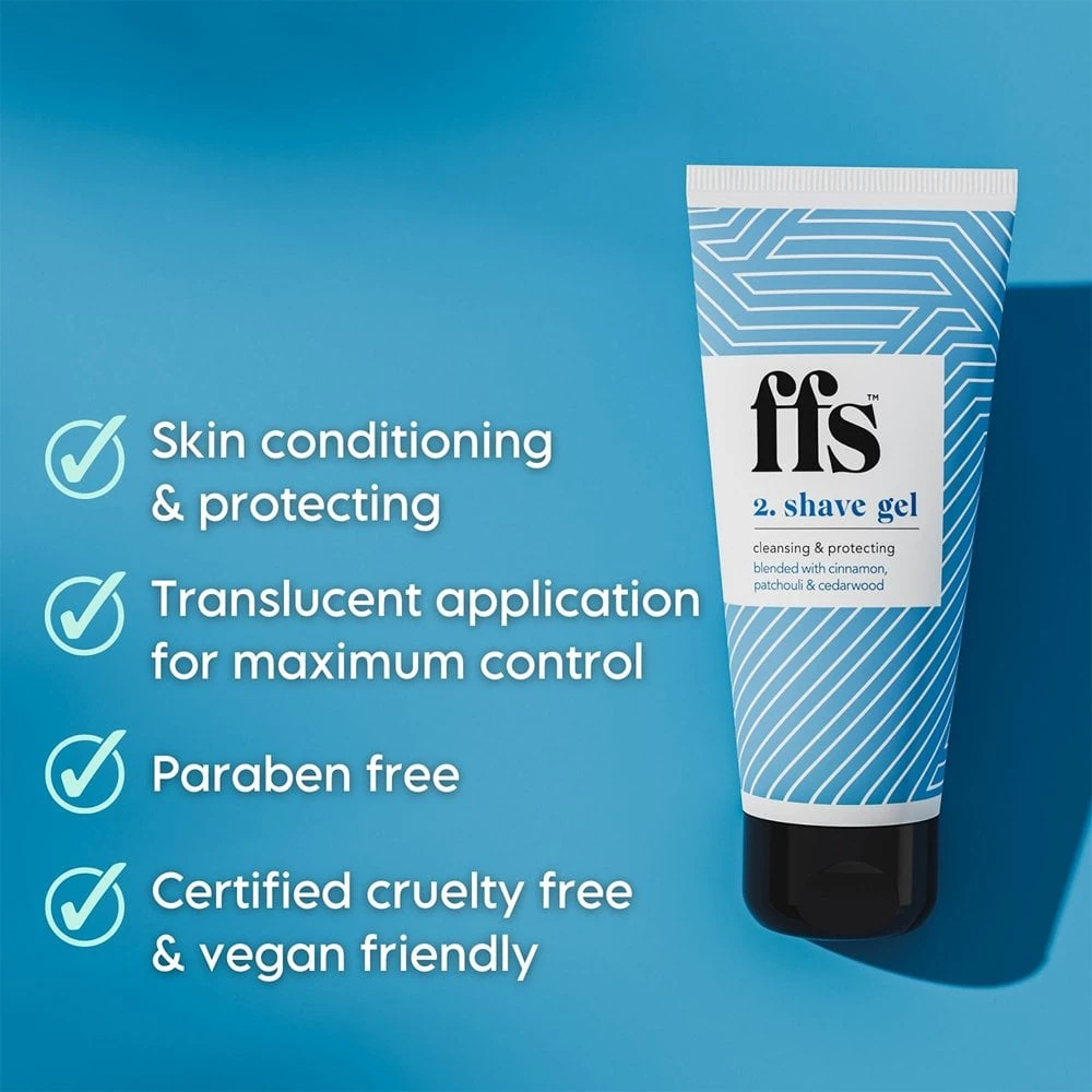 - 1 x FFS Vegan Shave Gel (100ml) – designed to create a protective barrier between the blade and skin.