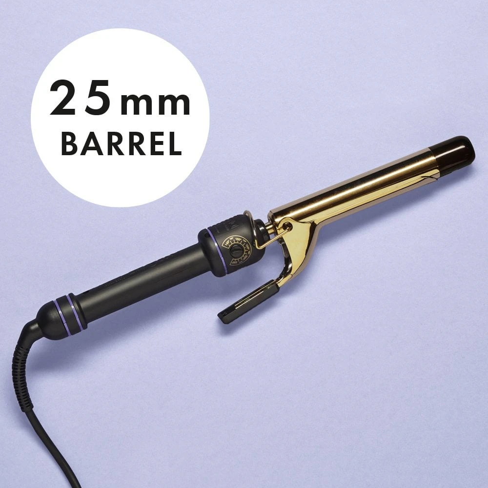 Hot Tools Pro Signature Gold Curling Iron 25mm creates long-lasting, shiny, and bouncy classic curls and waves with its gold-plated barrels providing faster styling. Exclusive Pulse Technology ensures fast heat up and instant heat recovery, maintaining even heat.