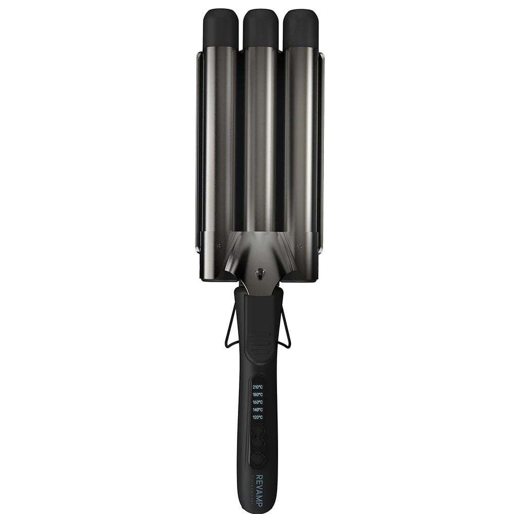 Revamp Progloss Beach Deep Waver creates beautiful, bouncy beach waves. This triple barrel hair waver ensures quick and easy styling. Simply clamp down your hair with the built-in styling clip, and release for flawless, long-lasting waves.