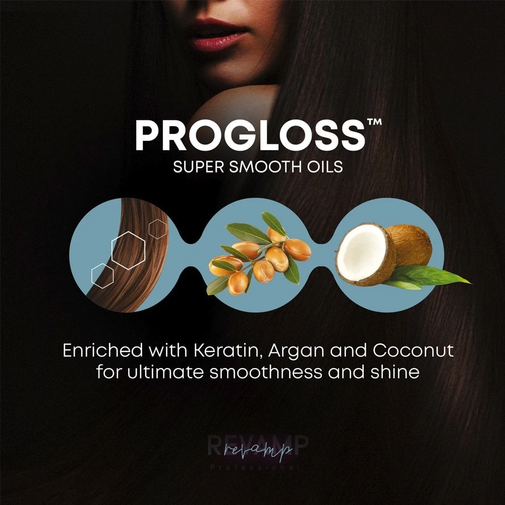 - Progloss™ super-smooth Keratin, Argan and Coconut Oil-infused ceramic plates for ultimate smoothness.