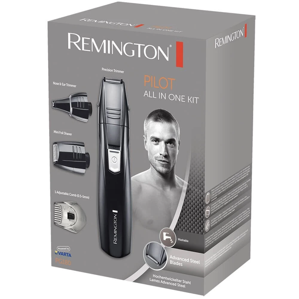 Remington Pilot Men’s All In One Grooming Kit PG180 is a compact, battery-operated groomer which features 3 attachment heads and an adjustable comb to accommodate all your facial hair trimming needs.