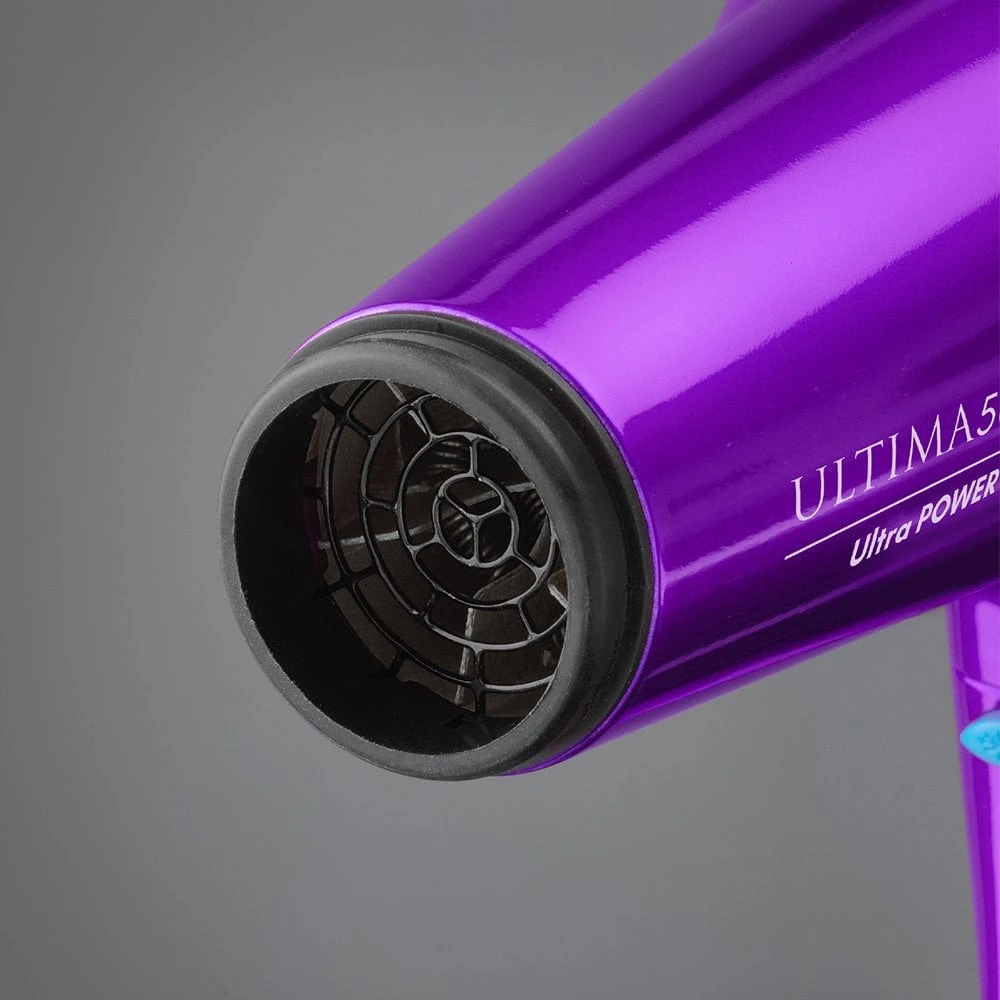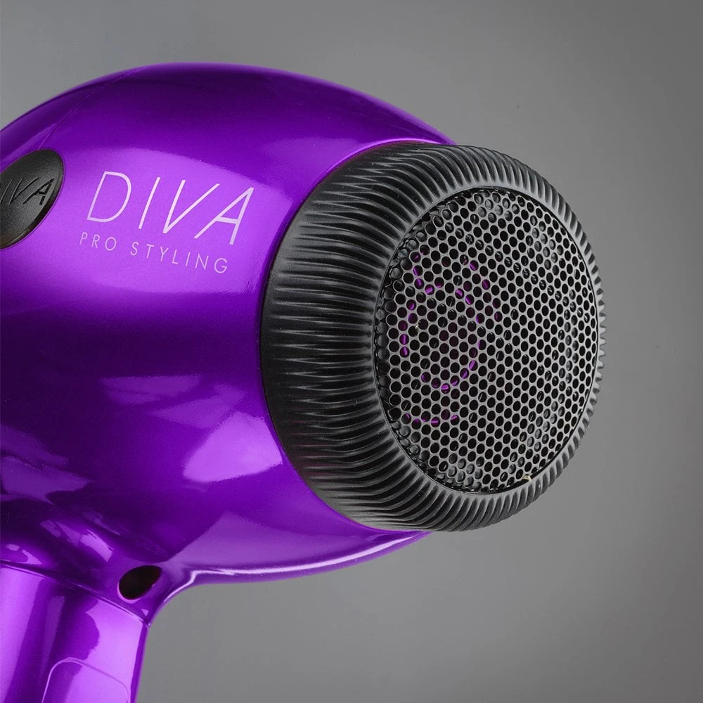 Diva Pro Ultima 5000 Pro Hair Dryer Purple is one of the most powerful hair dryers available. Featuring a high-pressure motor system that gives an unrivalled airflow of 77km/h airflow combined with a maximum temperature of 110C. Also includes a built-in ionic generator which is designed to enhance shine and eliminate frizz.